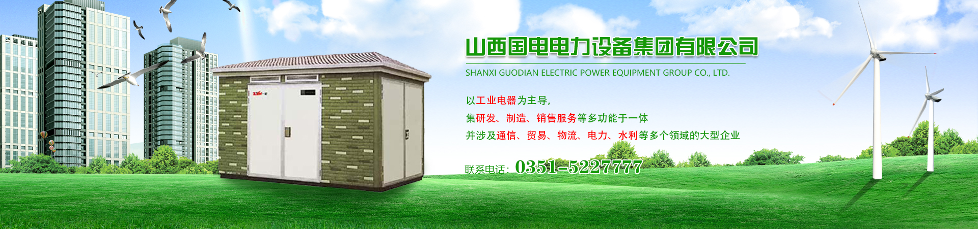 山西國電電力設備集團有限公司是一家以工業電器為主導,集研發、制造、銷售服務等多功能于一體,并涉及通信、貿易、物流、電力、水利等多個領域的大型企業。公司創建于2009年7月,集團公司主要生產110KV及以下輸變電設備、風力組合式變電站、高低壓成套設備、箱式變電站、電力變壓器、節能設備等產品。